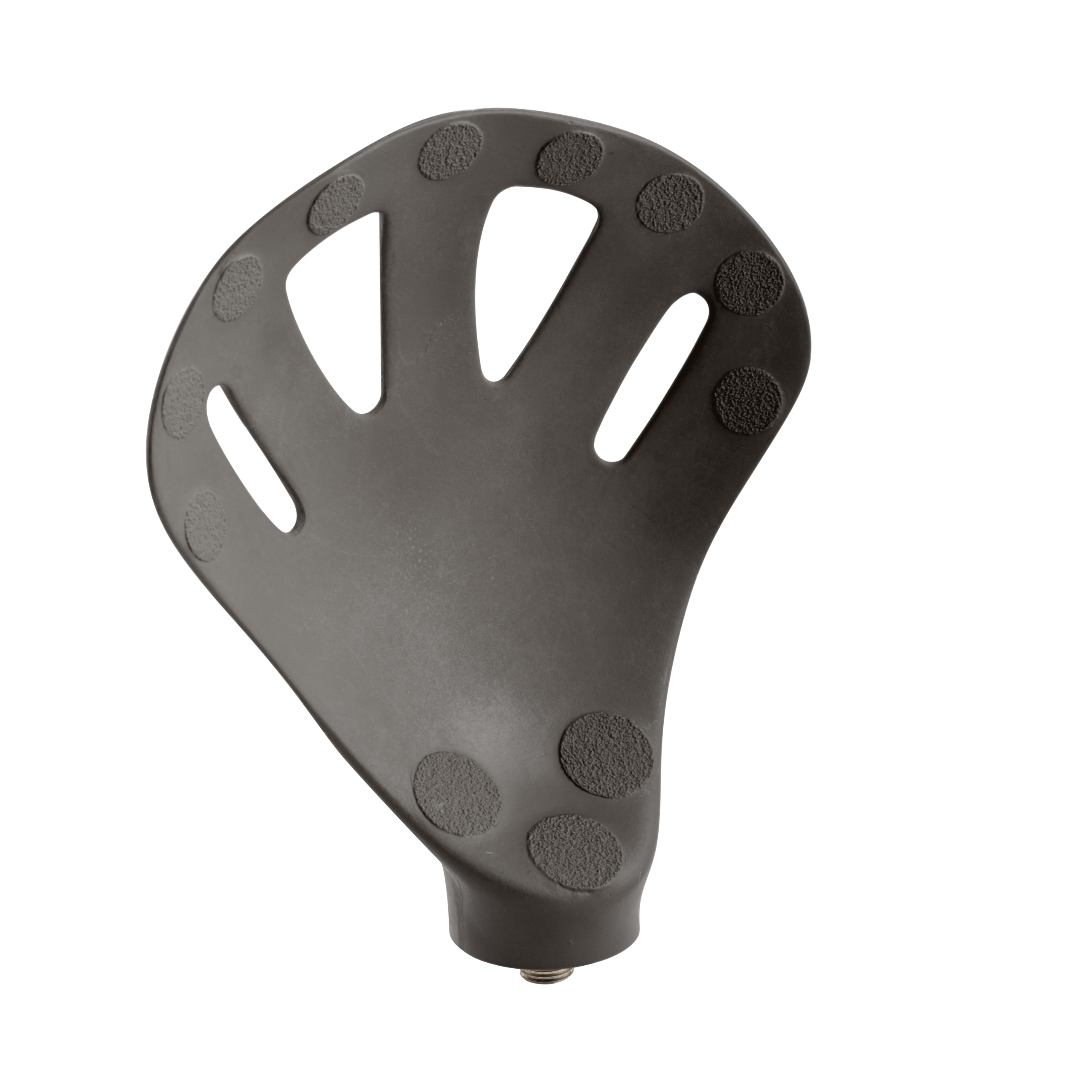 The Rebound Pro enables safe, quick action control of the ball during any dribbling, shooting and passing situation for the player with a unilateral hand absence. The Re-Bound Pro is strong but flexible. It provides a unique, resilient wrist/hand and finger-like type of ball control which perfectly matches the basketball contour and its raised “friction discs” enhance handling. The ½ inch diameter threaded stud fits any USA Standard made wrists. The Mill’s Rebound Pro was inspired by the Will Mills family in Colorado. Recommended for ages 10 and up. May be available for direct purchase. Universal left or right fit. Colors: Black or Tan (extra charge). May be available for direct purchase.