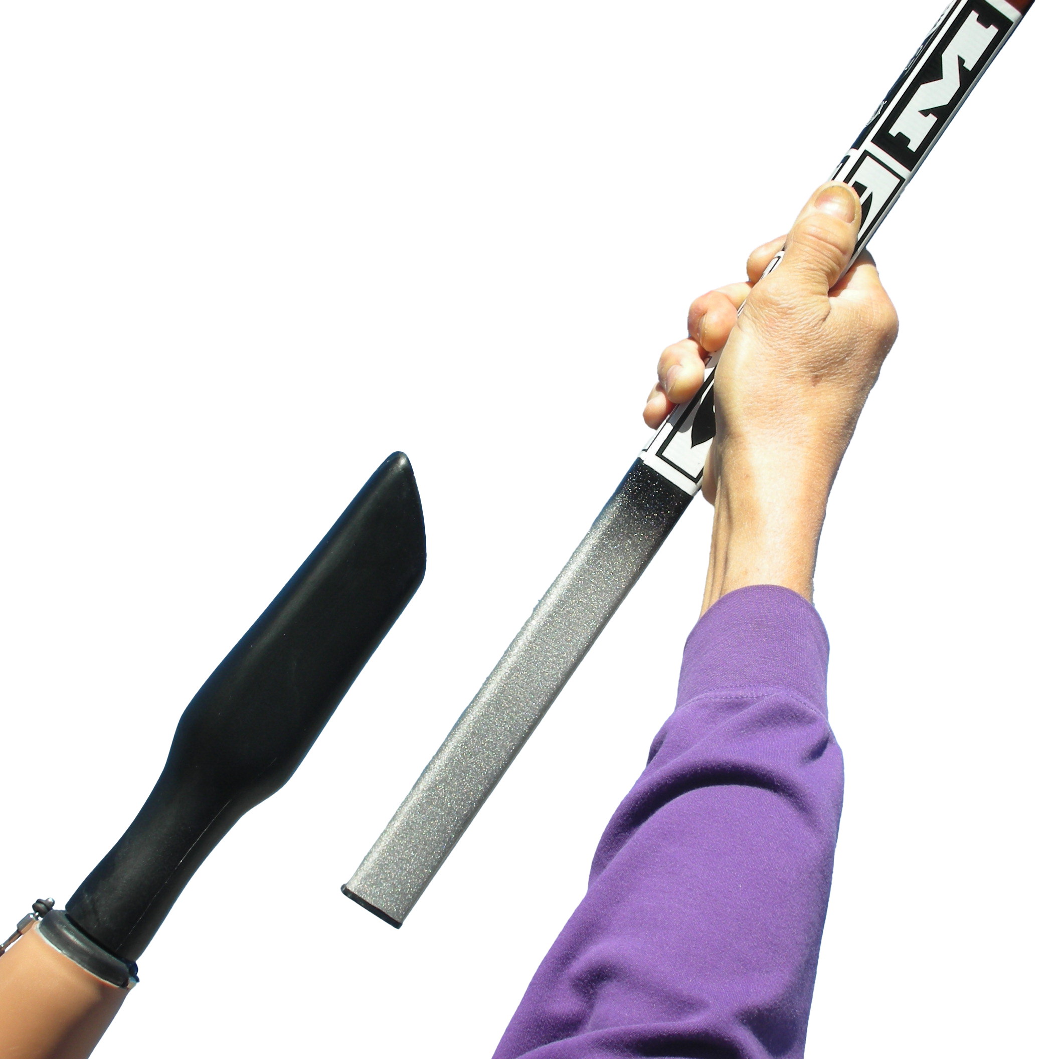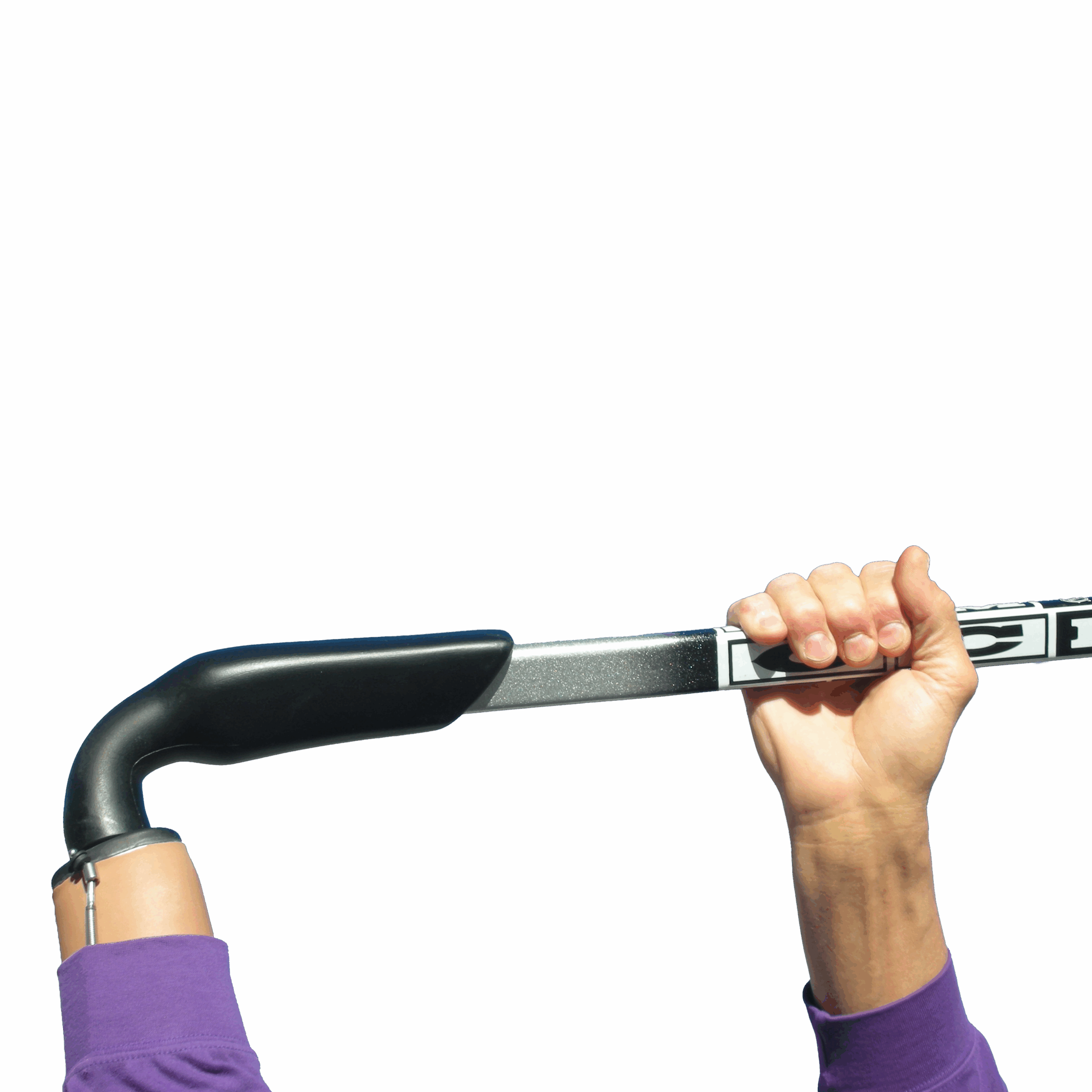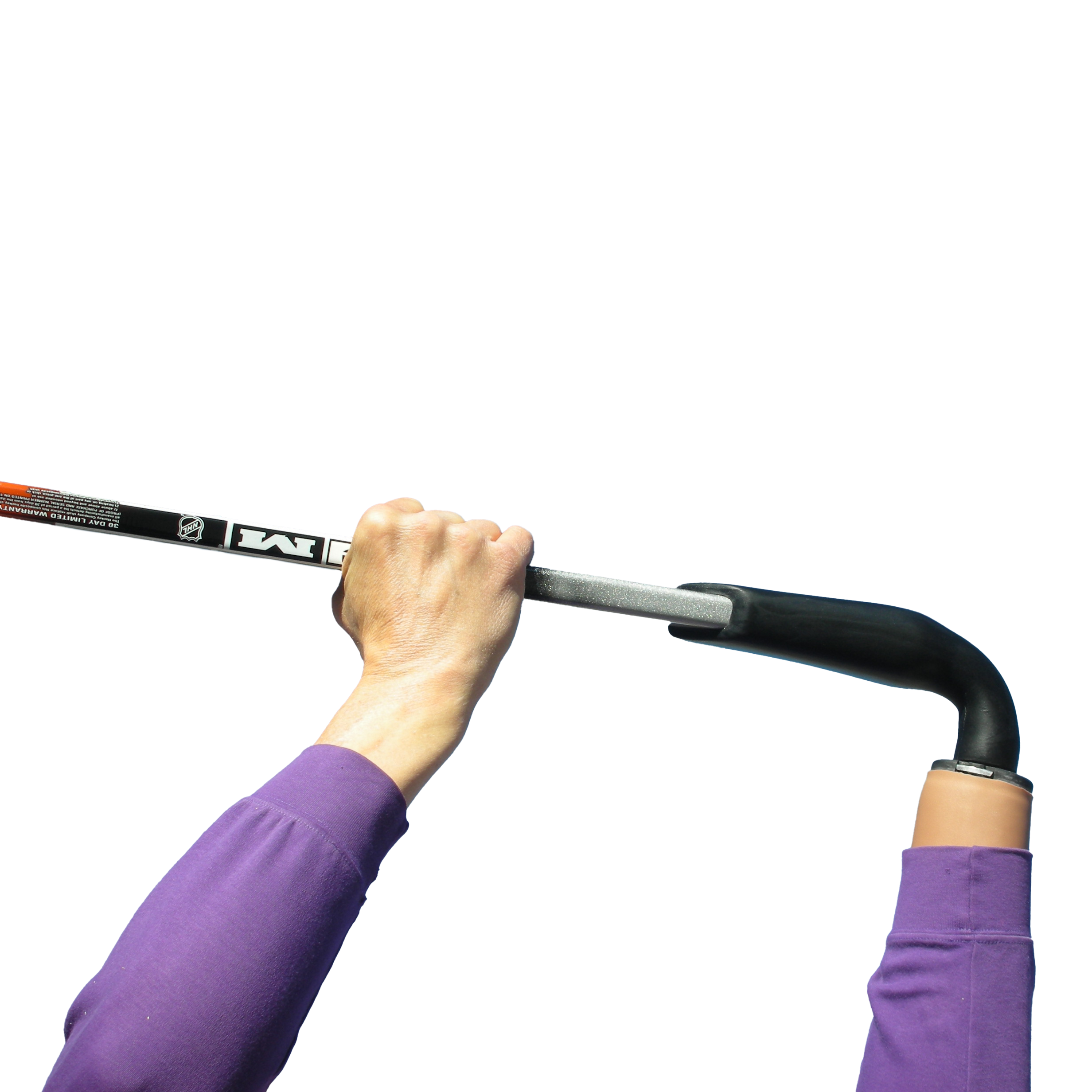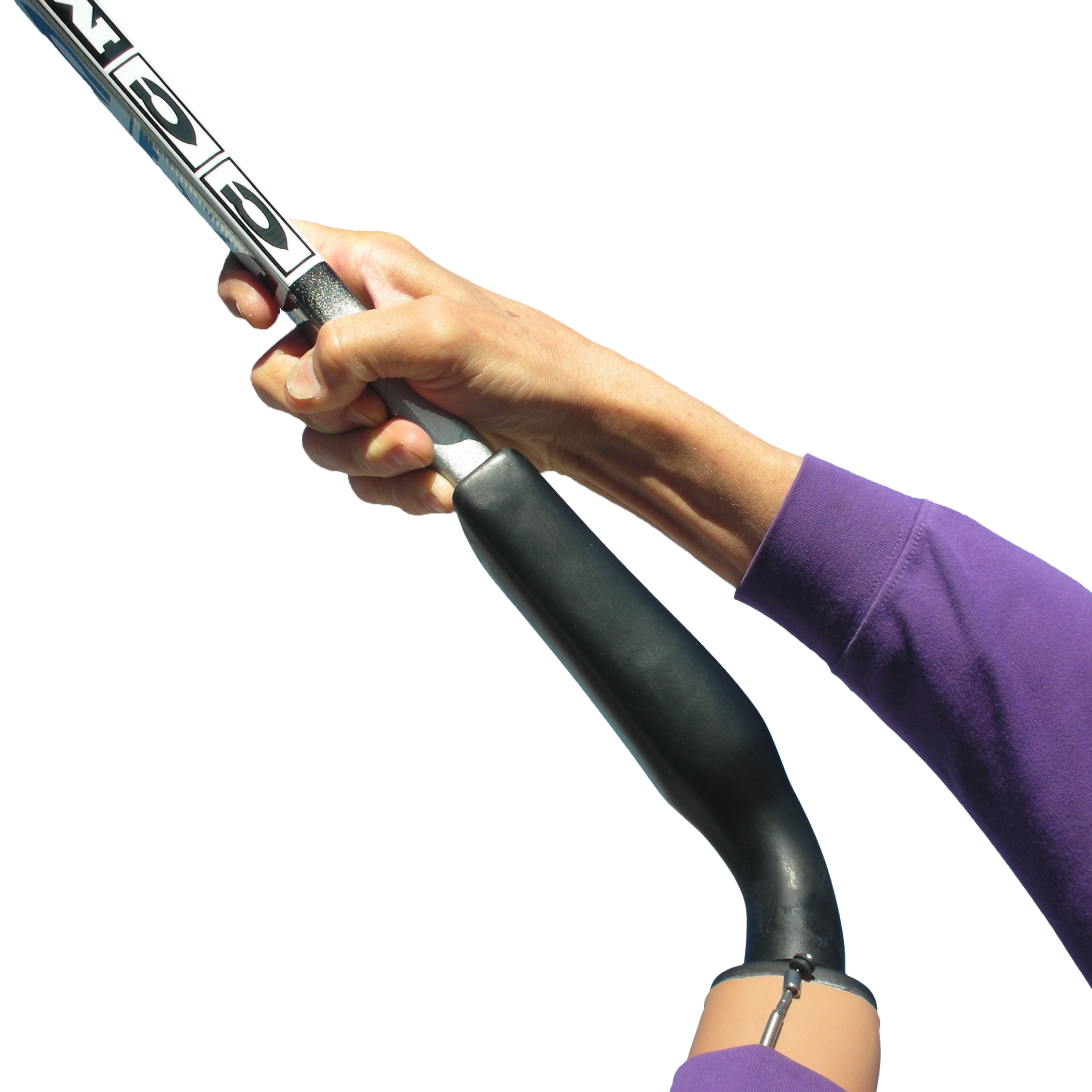 The Power Play is a high-performance prosthetic device for playing ice hockey. The Power Play is designed to securely, slide-fit down over the last five inches of the hockey stick for top of the stick handling control. The safe, all polymer construction is available in two stiffness models (85 the most popular, and 95) to meet the needs of a wide variety of teenage and adult players. The Power Play provides for quick, single-handed, agile stick and puck control and powerful shots. The energy storing design performs much like the human forearm and wrist. The Power Play flexes and rebounds for shots and will bend away under load to prevent injury during a fall or hit. The device can be modified to provide the exact level of flexibility and power that the individual player needs making it extremely versatile. Universal left or right fit. It has a standard ½ inch diameter mounting connector to fit most standard wrist openings. Color Black. May be available for direct purchase.