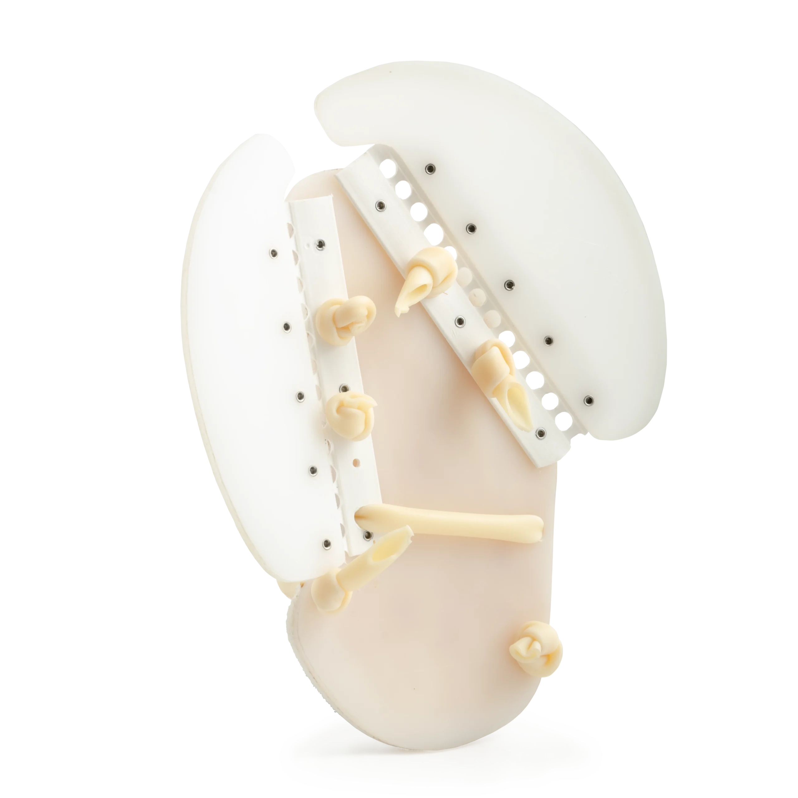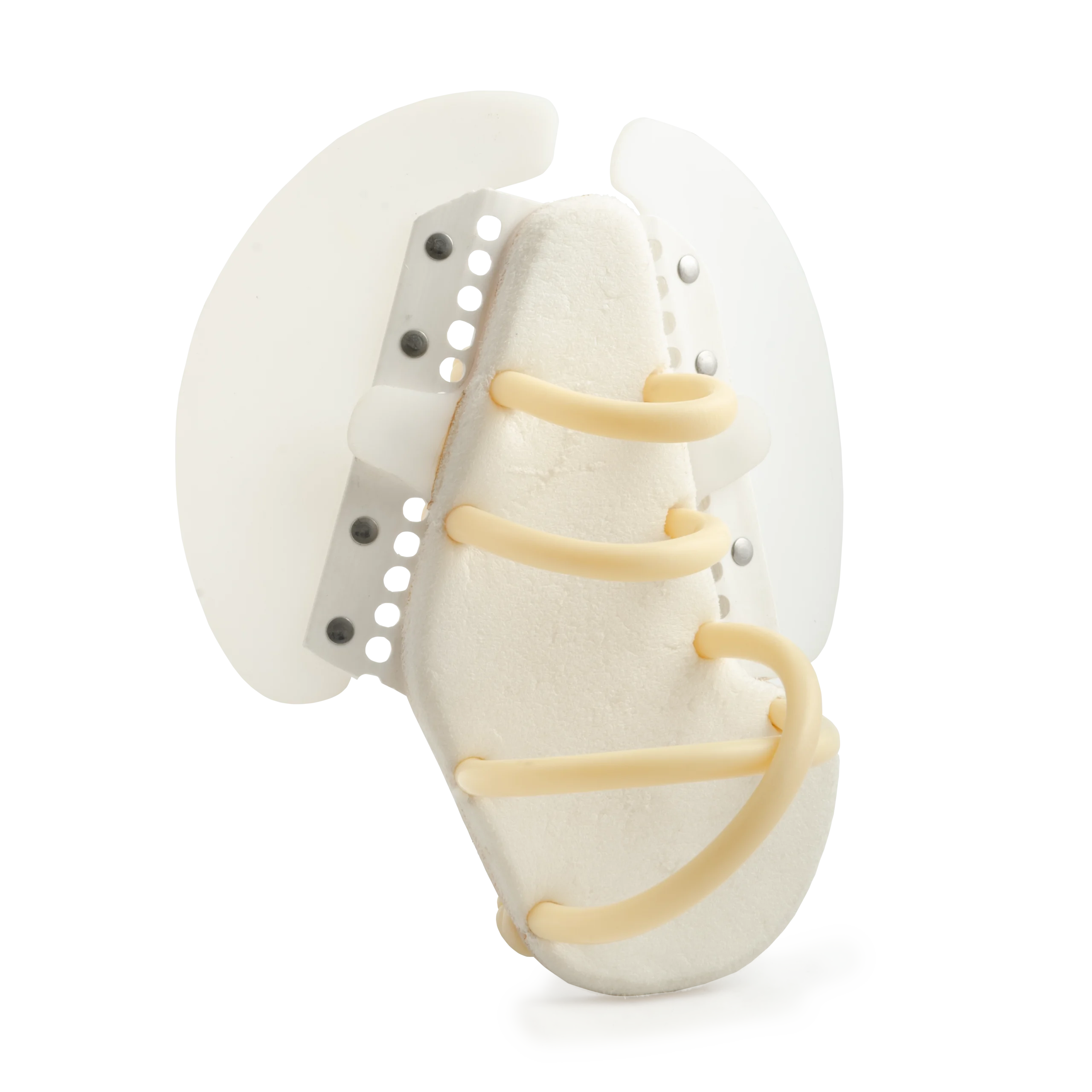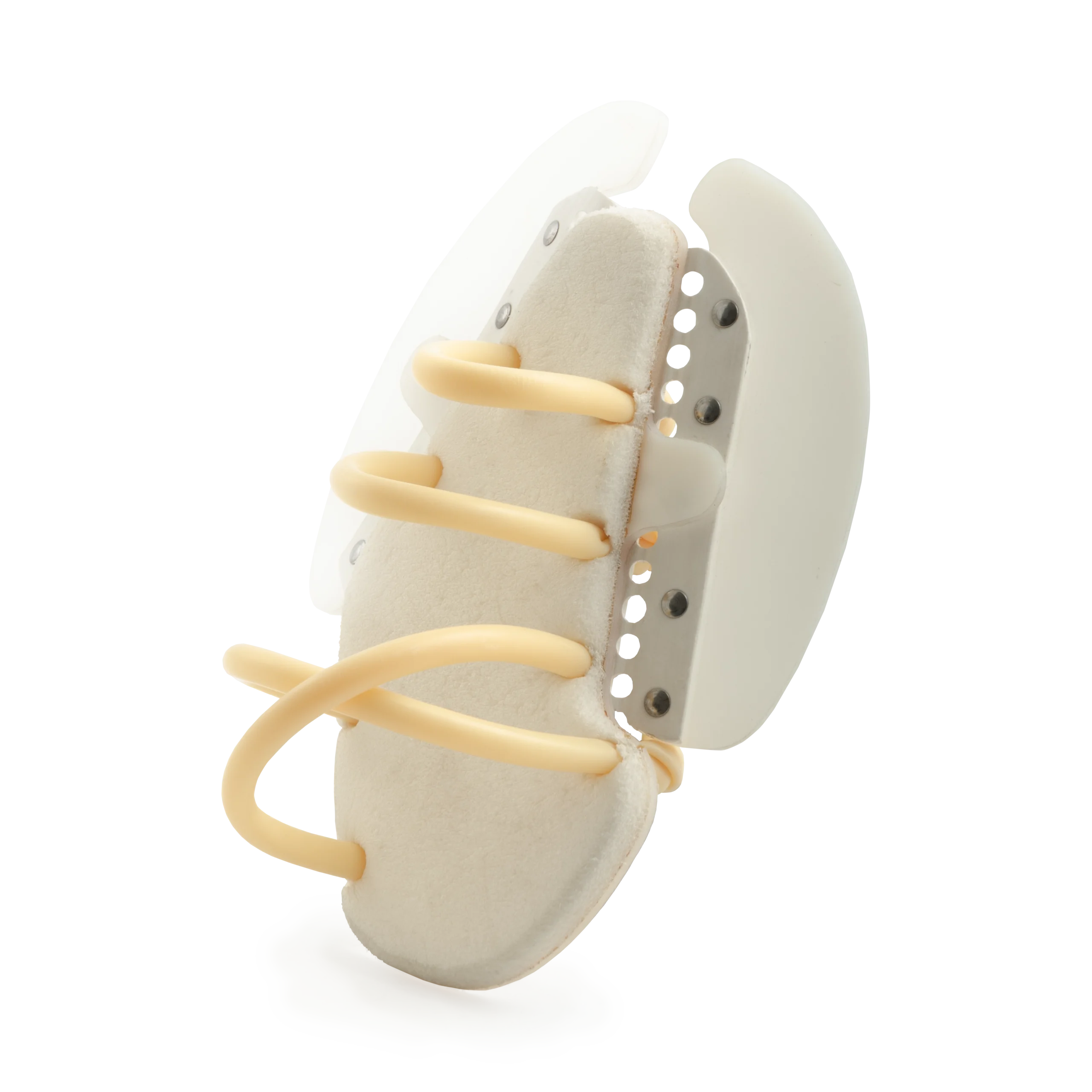 The Swim Fin Kit offers most of the advantages of the Freestyle Swimming Device but is used without a prosthesis. The device is secured to the limb with stretch tubbing. We provide all the required materials and instructions for fabrication. General shops tools are required for construction including band or jig saw, belt sander, rivet tools, etc. Patterns supplied with the kit enable custom construction to match a person’s individual limb and hand dimensions. Universal right or left fit. Can be built for adolescent to adult. Fabrication is best left to the skills of a certified prosthetist. Note: Product uses Latex®. Color: Translucent White. May be available for direct purchase.